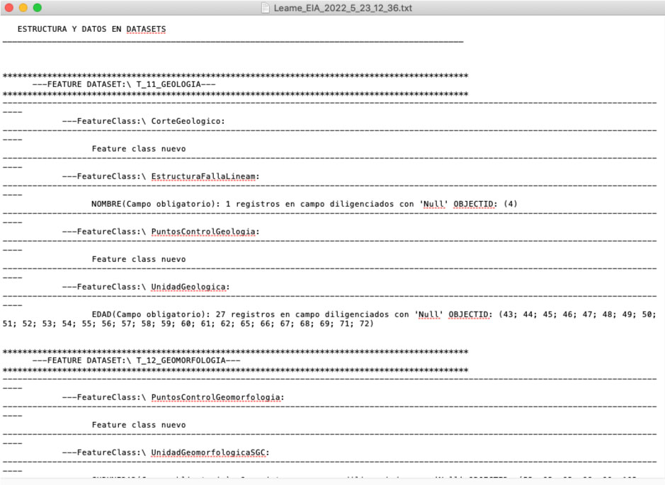 Hemos desarrollado una herramienta de validación para el proceso de aseguramiento de calidad de los datos geográficos, la cual nos permite cumplir con los índices de calidad técnicos requeridos según el modelo estándar de la ANLA.